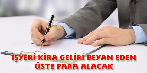2014 yılında 27 bin TL’nin üzerinde işyeri kira geliri elde edenler, 25 Mart akşamına kadar beyanname verecekler. Sadece işyeri kira geliri elde etmiş olup, kira geliri toplamı 27 bin TL’yi aşmayanlar ise beyanname vermeyecek.