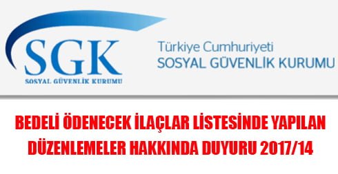 BEDELİ ÖDENECEK İLAÇLAR LİSTESİNDE YAPILAN DÜZENLEMELER HAKKINDA DUYURU 2017/14