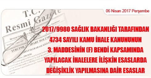 SAĞLIK BAKANLIĞI TARAFINDAN 4734 SAYILI KAMU İHALE KANUNUNUN 3 ÜNCÜ MADDESİNİN (f) BENDİ KAPSAMINDA YAPILACAK İHALELERE İLİŞKİN ESASLARDA DEĞİŞİKLİK YAPILMASINA DAİR ESÂSLAR
