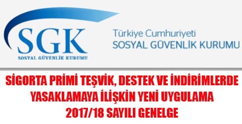 Konu : Sigorta Primi Teşvik, Destek ve İndirimlerde Yasaklamaya İlişkin Yeni Uygulama