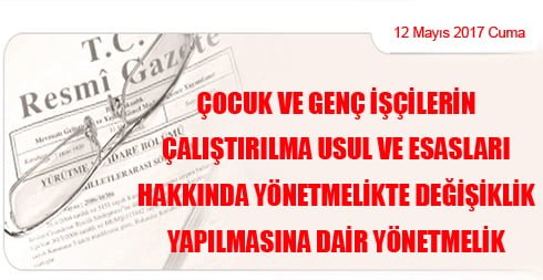 Home»Haberler»Çocuk ve Genç İşçilerin Çalıştırılma Usul ve Esasları Hakkında Yönetmelikte Değişiklik Yapılmasına Dair Yönetmelik