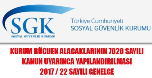 Buna göre, iş kazası ve meslek hastalığı, malullük, adi malullük ve ölüm halleri ile genel sağlık sigortalısına ve bunların bakmakla yükümlü olduğu kişilere yönelik (kasıt, kusur, ihmal, ve hata içeren) fiiller nedeniyle açılan rücuan alacak davaları sonucunda verilen mahkeme kararları ile (kesinleşmesi beklenmeksizin) belirlenen alacaklarımız için 30.6.2017 tarihine kadar yeniden yapılandırma başvurusunda bulunulması halinde, bahse konu alacak asıllarına, kanuni faiz uygulanan sürenin başlangıcından 27.5.2017 tarihine kadar geçen süre için 7020 sayılı Kanunun 1. maddesinde öngörüldüğü şekilde hesaplanacak tutar ilave edilmek suretiyle, 7020 sayılı Kanuna göre ödenecek toplam tutar hesaplanacaktır.