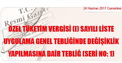 Özel Tüketim Vergisi (I) Sayılı Liste Uygulama Genel Tebliğinde Değişiklik Yapılmasına Dair Tebliğ (Seri No: 1)