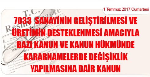 Kanun No: 7033 Kabul Tarihi: 18/6/2017