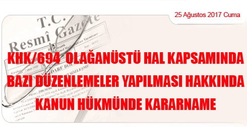Karar Sayısı: KHK/694 Karar Tarihi: 15.8.2017