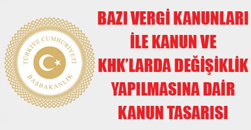 BAZI VERGİ KANUNLARI İLE KANUN VE KHK’LARDA DEĞİŞİKLİK YAPILMASINA DAİR KANUN TASARISI