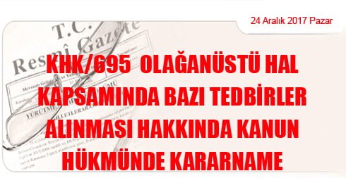 Olağanüstü hal kapsamında bazı tedbirler alınması; Anayasanın 121 inci maddesi ile 25/10/1983 tarihli ve 2935 sayılı Olağanüstü Hal Kanununun 4 üncü maddesine göre, Cumhurbaşkanının başkanlığında toplanan Bakanlar Kurulu’nca 20/11/2017 tarihinde kararlaştırılmıştır.