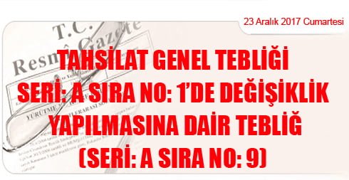 TAHSİLAT GENEL TEBLİĞİ SERİ: A SIRA NO: 1’DE DEĞİŞİKLİK