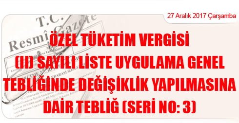 Özel Tüketim Vergisi (II) Sayılı Liste Uygulama Genel Tebliğinde Değişiklik Yapılmasına Dair Tebliğ (Seri No: 3)