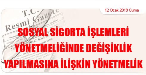 SOSYAL SİGORTA İŞLEMLERİ YÖNETMELİĞİNDE DEĞİŞİKLİK