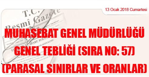 Muhasebat Genel Müdürlüğü Genel Tebliği (Sıra No: 57) (Parasal Sınırlar ve Oranlar)