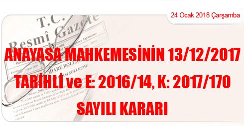 Home»Haberler»Anayasa Mahkemesinin 13/12/2017 Tarihli ve E: 2016/14, K: 2017/170 Sayılı Kararı