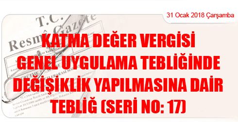 KATMA DEĞER VERGİSİ GENEL UYGULAMA TEBLİĞİNDE