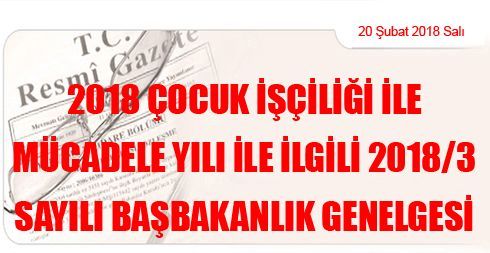 2018 Çocuk İşçiliği ile Mücadele Yılı ile İlgili 2018/3 Sayılı Başbakanlık Genelgesi