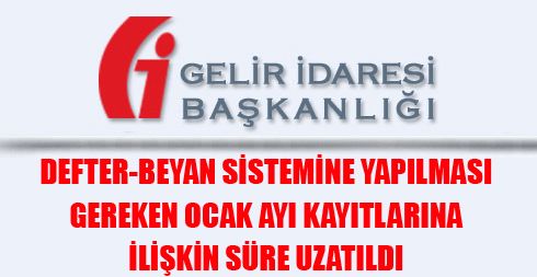 Defter-Beyan Sistemine Yapılması Gereken Ocak Ayı Kayıtlarına İlişkin Süre Uzatıldı
