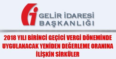 2018 yılı birinci geçici vergi döneminde uygulanacak yeniden değerleme oranı % 4,54 (yüzde dört virgül ellidört)olarak tespit edilmiştir.