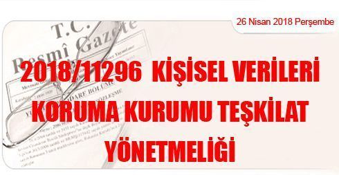 2018/11296 Kişisel Verileri Koruma Kurumu Teşkilat Yönetmeliği