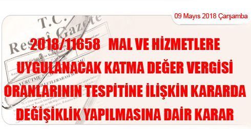 MAL VE HİZMETLERE UYGULANACAK KATMA DEĞER VERGİSİ ORANLARININ TESPİTİNE İLİŞKİN KARARDA DEĞİŞİKLİK YAPILMASINA DAİR KARAR