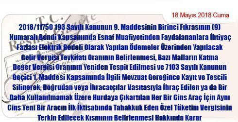 14.5.2018 TARİHLİ VE 2018/11750 SAYILI