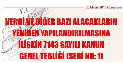 Vergi ve Diğer Bazı Alacakların Yeniden Yapılandırılmasına İlişkin 7143 Sayılı Kanun Genel Tebliği (Seri No: 1)