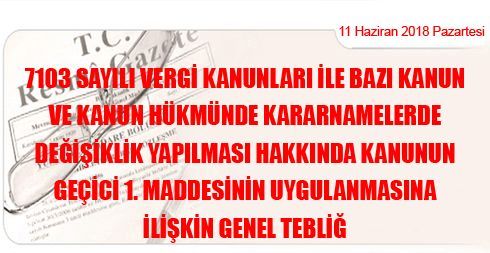 7103 SAYILI VERGİ KANUNLARI İLE BAZI KANUN VE KANUN HÜKMÜNDE KARARNAMELERDE DEĞİŞİKLİK YAPILMASI HAKKINDA KANUNUN GEÇİCİ 1. MADDESİNİN UYGULANMASINA İLİŞKİN GENEL TEBLİĞ