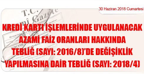 Kredi Kartı İşlemlerinde Uygulanacak Azami Faiz Oranları Hakkında Tebliğ (Sayı: 2016/8)’de Değişiklik Yapılmasına Dair Tebliğ (Sayı: 2018/4)