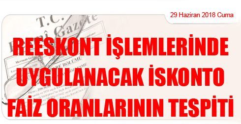 Bankamızca, vadesine en çok 3 ay kalan senetler karşılığında yapılacak reeskont işlemlerinde uygulanacak iskontofaiz oranı yıllık yüzde 18,50, avans işlemlerinde uygulanacak faiz oranı ise yıllık yüzde 19,50 olarak tespit edilmiştir.