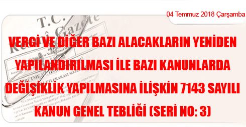 7143 SAYILI KANUN GENEL TEBLİĞİ