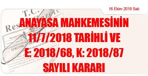 (16 Ekim 2018 Tarihli ve 30567 Sayılı Resmi Gazete’ de Yayımlanmıştır)