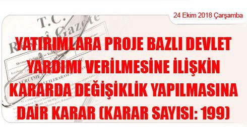 YATIRIMLARA PROJE BAZLI DEVLET YARDIMI VERİLMESİNE İLİŞKİN KARARDA DEĞİŞİKLİK YAPILMASINA DAİR KARAR