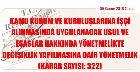 Kamu Kurum ve Kuruluşlarına İşçi Alınmasında Uygulanacak Usul ve Esaslar Hakkında Yönetmelikte Değişiklik Yapılmasına Dair Yönetmelik (Karar Sayısı: 322)