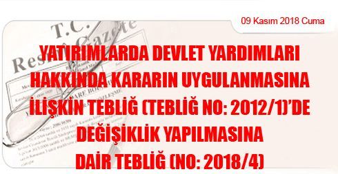 YATIRIMLARDA DEVLET YARDIMLARI HAKKINDA KARARIN