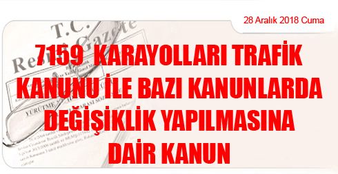 Kanun No. 7159 Kabul Tarihi: 27.12.2018