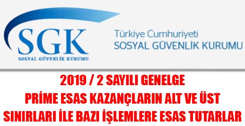 Buna göre, 1.1.2019 ila 31.12.2019 tarihleri arasında uygulanmak üzere sigortalılar için sigorta primine esas günlük ve aylık kazançların alt ve üst sınırlarında, yurtdışında geçen süreler ile hizmet borçlanmalarında, isteğe bağlı sigortalılar ve genel sağlık sigortalılarının ödeyecekleri primlerde dikkate alınacak tutarlar ile idari para cezalarında, geçici iş göremezlik, cenaze ve emzirme ödeneklerinde dikkate alınacak tutarlar aşağıda gösterilmiştir.