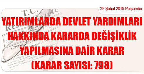 YATIRIMLARDA DEVLET YARDIMLARI HAKKINDA KARARDA DEĞİŞİKLİK YAPILMASINA DAİR KARAR
