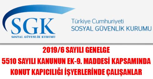 2019 / 6 Sayılı Genelge 5510 Sayılı Kanunun Ek-9. Maddesi Kapsamında Konut Kapıcılığı İşyerlerinde Çalışanlar