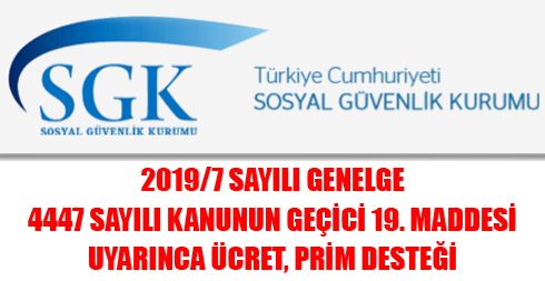 Konu : 4447 sayılı Kanunun geçici 19. maddesi uyarınca ücret, prim desteği