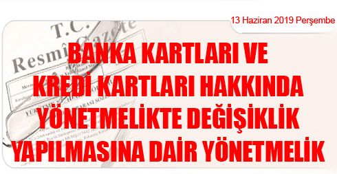 BANKA KARTLARI VE KREDİ KARTLARI HAKKINDA YÖNETMELİKTE