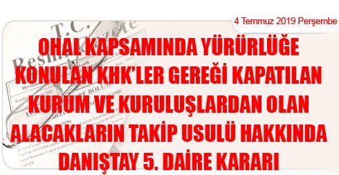 Anılan K.H.K. kuralları ile olağanüstü hal kapsamında çıkarılan K.H.K.’ler ile kapatılan kurumların borçlan ve alacakları ile ilgili olarak açılmış hukuk davalarının veya başlatılmış takiplerin esasının incelenmeksizin sona erdirilmesi öngörülmüş; bu kapsamda açılmış davalar yönünden verilmiş kararlar üzerine veya doğrudan açılacak idari davalar öncesinde yetkili merci olan kurumlara başvuru koşulu getirilerek, ancak bu başvuruların reddi üzerine yargı yolu olarak idare mahkemeleri gösterilmiş, ancak İdarenin bu başvurulara karşı ne kadar süre içinde cevap vereceği, başvurunun sonuçlarını ne zaman doğuracağı yolunda bir düzenleme yapılmayarak başvurucular bakımından belirsiz bir süreç yaratılmıştır.