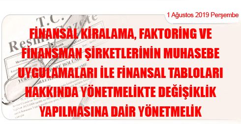 Finansal Kiralama, Faktoring ve Finansman Şirketlerinin Muhasebe Uygulamaları ile Finansal Tabloları Hakkında Yönetmelikte Değişiklik Yapılmasına Dair Yönetmelik