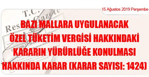 Karar Sayısı: 1424 Karar Tarihi: 14 Ağustos 2019