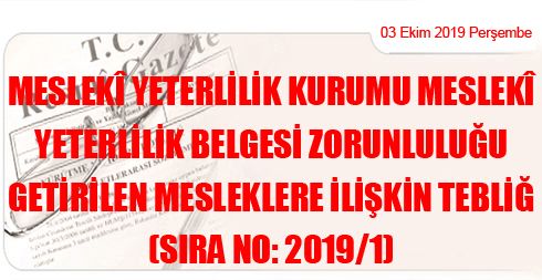 ZORUNLULUĞU GETİRİLEN MESLEKLERE İLİŞKİN TEBLİĞ
