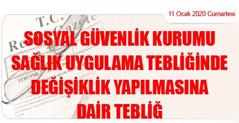 Sosyal Güvenlik Kurumu Sağlık Uygulama Tebliğinde