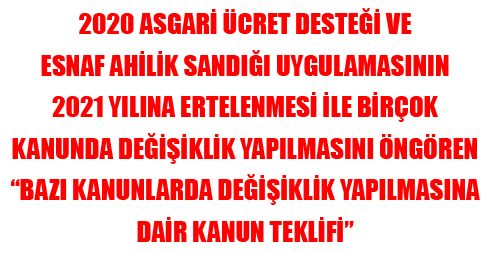 – Esnaf Ahilik Sandığı uygulamasının 1.1.2021 tarihine kadar ertelenmesi,