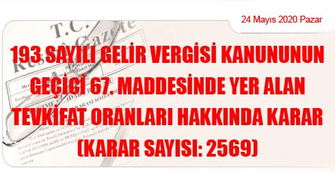 193 sayılı Gelir Vergisi Kanununun geçici 67. maddesinde yer alan tevkifat oranlan hakkındaki ekli Kararın yürürlüğe konulmasına, 193 sayılı Kanunun mezkûr maddesi gereğince karar verilmiştir.