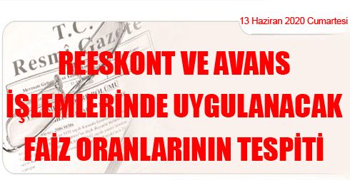 Bankamızca, vadesine en çok 3 ay kalan senetler karşılığında yapılacak reeskont işlemlerinde uygulanacak iskonto faiz oranı yıllık yüzde 9, avans işlemlerinde uygulanacak faiz oranı ise yıllık yüzde 10 olarak tespit edilmiştir.