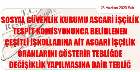 MADDE 1 – 12/5/2010 tarihli ve 27579 sayılı Resmî Gazete’de yayımlanan Sosyal Güvenlik Kurumu Asgari İşçilik Tespit Komisyonunca Belirlenen Çeşitli İşkollarına Ait Asgari İşçilik Oranlarını Gösterir Tebliğin Ek-1’i ekteki şekilde değiştirilmiştir.