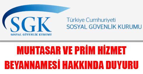MUHTASAR VE PRİM HİZMET BEYANNAMESİ HAKKINDA DUYURU