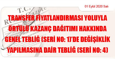 Transfer Fiyatlandırması Yoluyla Örtülü Kazanç Dağıtımı Hakkında Genel Tebliğ (Seri No: 1)’de Değişiklik Yapılmasına Dair Tebliğ (Seri No: 4)
