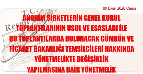 (09 Ekim 2020 Tarihli ve 31269 Sayılı Resmi Gazete’ de Yayımlanmıştır)